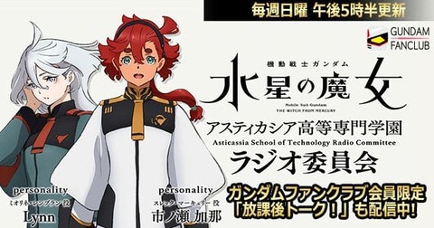アニメ全般お待たせしました!「機動戦士ガンダム #水星の魔女 ~アスティカシア高等専門学園 ラジオ委員会~」第23回配信開始です!ゲストにプロスペラ役の #能登麻美子 さんがいらっしゃってます!是非お聴き下さい ! https://t.co/eey3RHqhPZ #音泉 #G_Witch #市ノ瀬加那 #Lynn pic.twitter.com/ASkKZOHVJd— インターネットラジオステーション<音泉> (@onsenradio) March 19, 2023 https://platform.twitter.com/widgets.js \ 📣プロスペラがやってきた! /#水星の魔女 ~アスティカシア高等専門学園 ラジオ委員会~」第23回目の配信は #市ノ瀬加那 さんと #Lynn さん、ゲストに #能登麻美子 さんが登場✨\放課後トーク‼️/3人で会員のお便りを読んでおります! 詳しくは👇https://t.co/KOIO8u3pgq#G_Witch pic.twitter.com/XDpeE46EOb— ガンダムファンクラブ【公式】 (@Gundam_FanC) March 19, 2023 https://platform.twitter.com/widgets.js